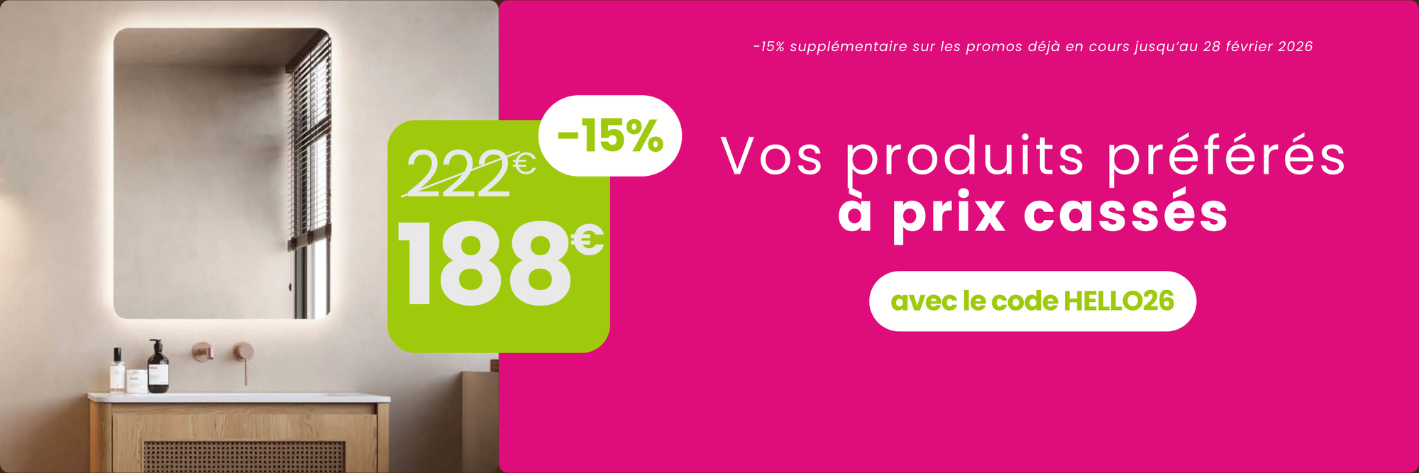 Miroirs LED, receveurs de douche, panneaux muraux, robinetterie et mobilier : des produits fiables, durables et faciles à installer, pour des projets propres, nets et réussis.